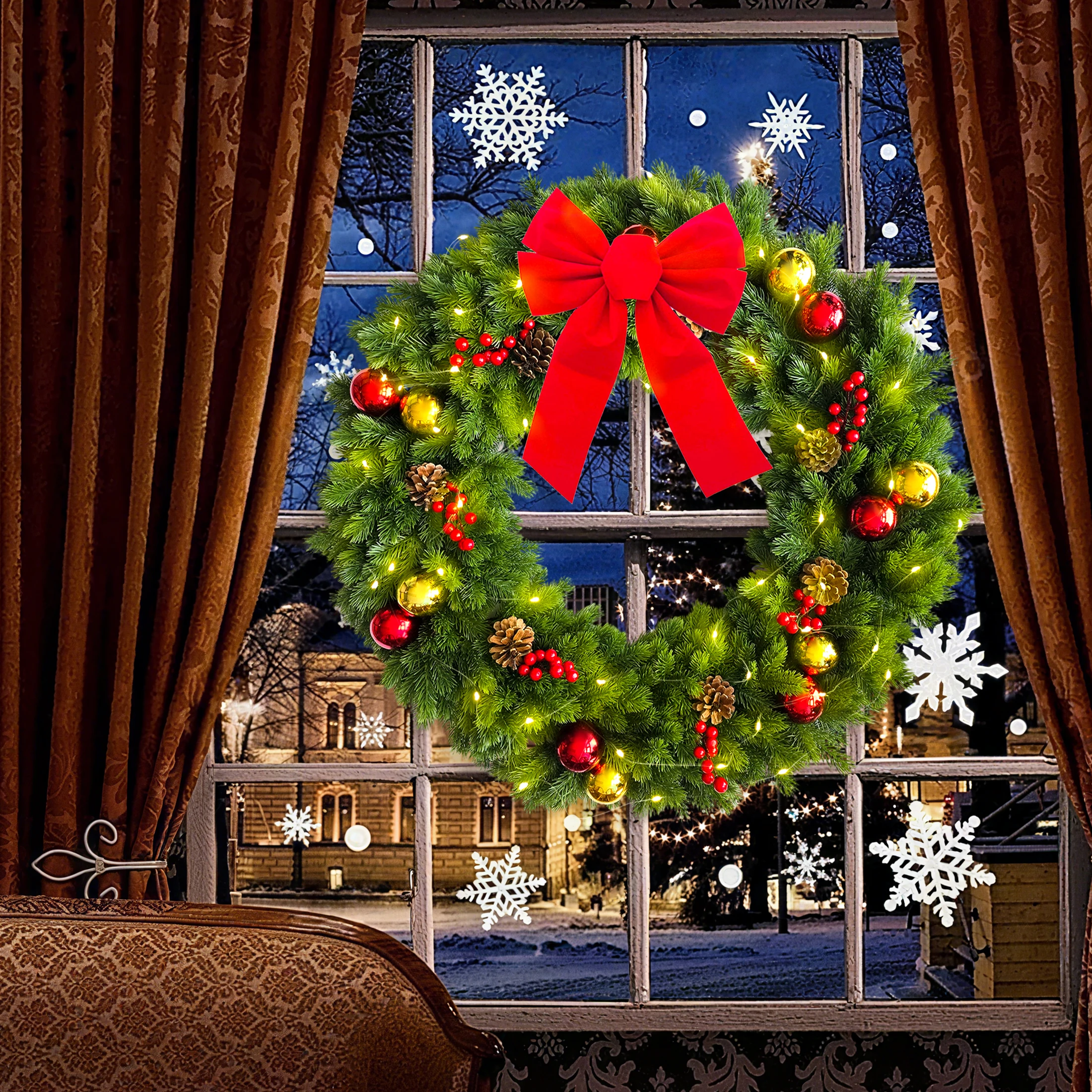 Let this Christmas wreath, which combines the durable texture of PE material, exquisite decoration and warm lighting, accompany you through every warm holiday moment. This Christmas, use it to light up an exclusive Christmas surprise for your family, friends or yourself~