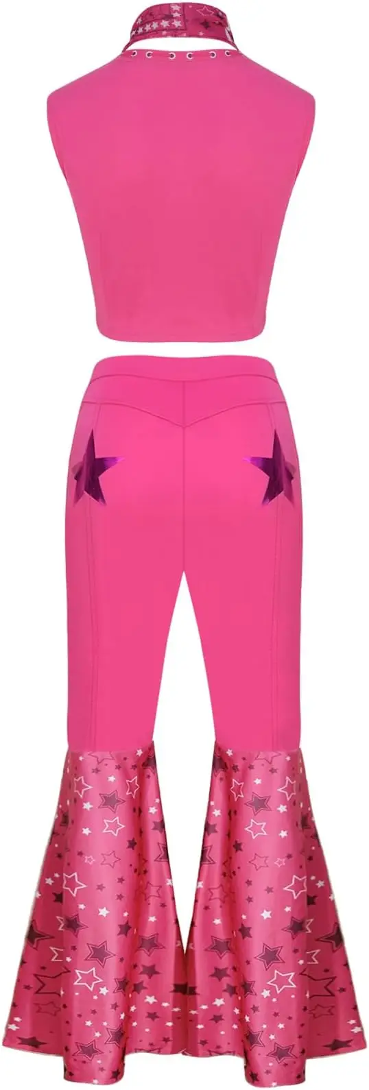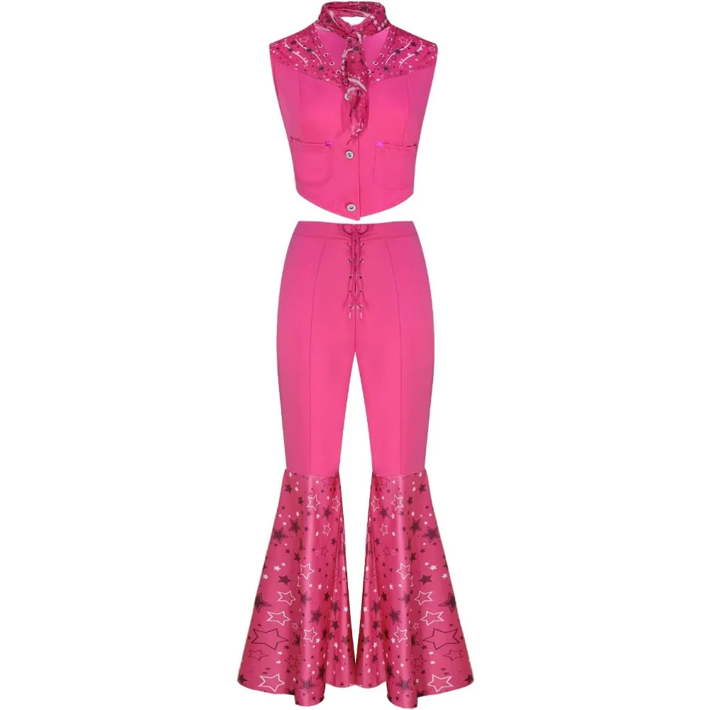 Movie Barbie Cosplay Rose Red Bell Bottoms Cosplay Barbie Adult Suit Clothing Party with earrings and Scarf Halloween Costumes