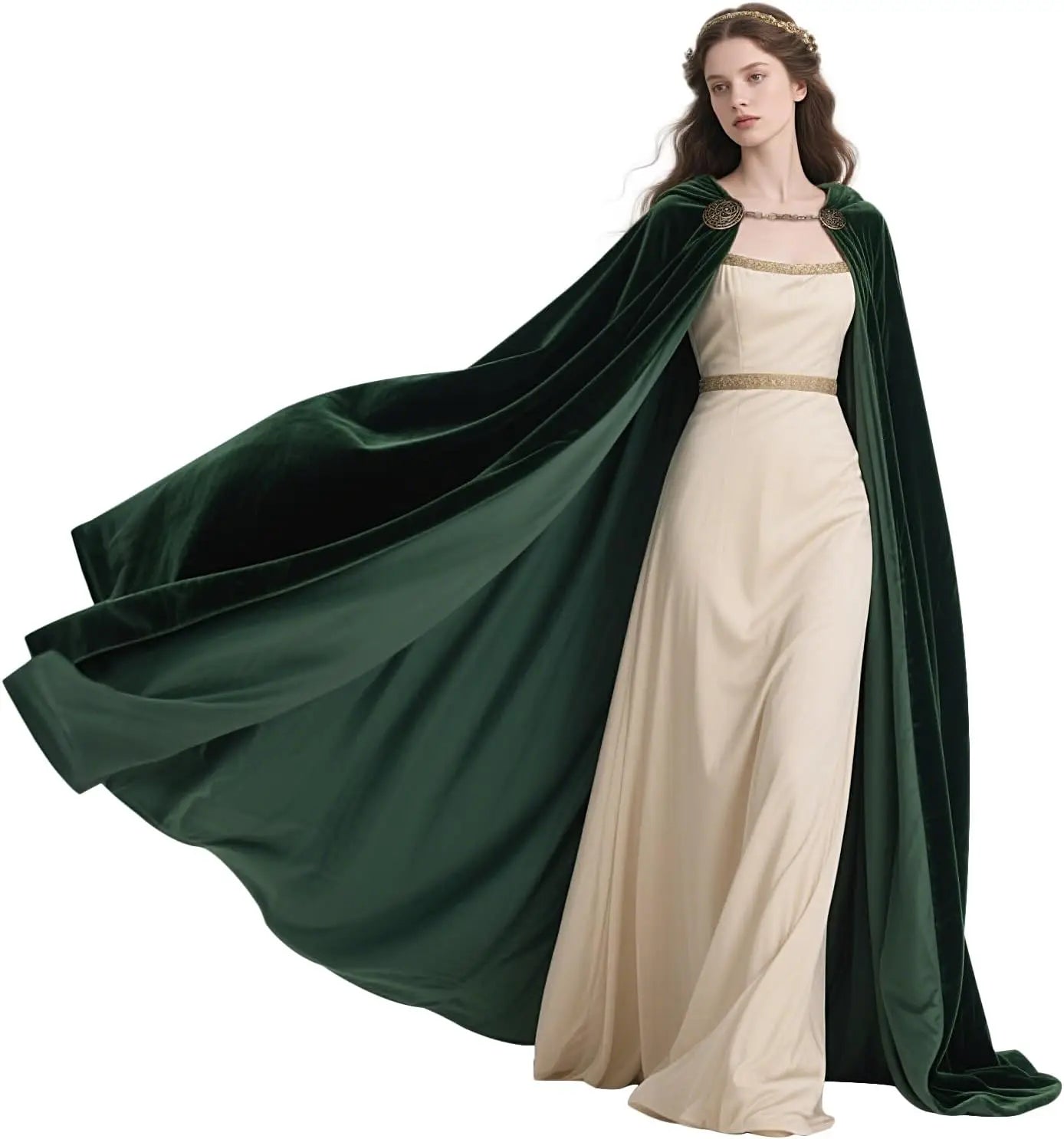 Embrace the mystique of ancient warriors and medieval wanderers with this Gothic Renaissance Hooded Cloak. Fastened with an authentic Viking tortoise brooch and chain, this dramatic cape channels Nordic strength and historical elegance in one striking piece.
