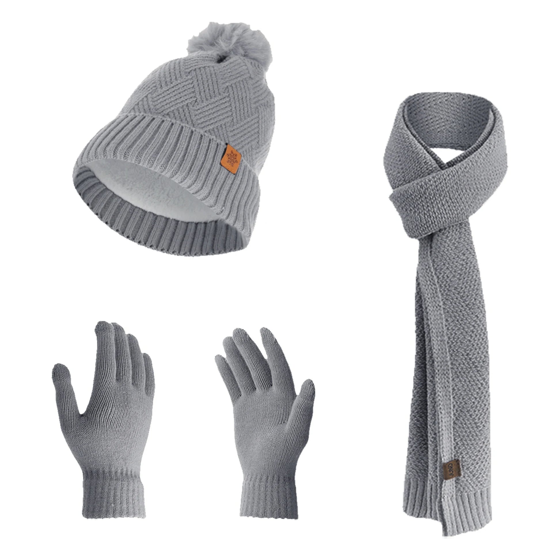 Knitted Hat Scarf Gloves Set Winter Warm Outfit Clothing Accessories for Cold Weather